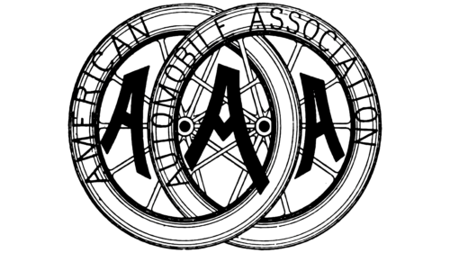 The first official AAA logo, introduced in 1906, featured two interlocked automobile wheels. Thin and spoked, they resembled early bicycle wheels, which was consistent with automotive design of the era. The wheels were linked like chain segments, a clear metaphor for cooperation and mutual assistance among drivers.