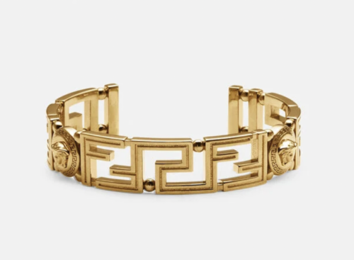 Jewelry and bracelets interpret the logo in sculptural ways: wide metallic cuffs with oversized monograms, chain bracelets featuring individual letters as charms, and leather bracelets adorned with FF-engraved clasps.