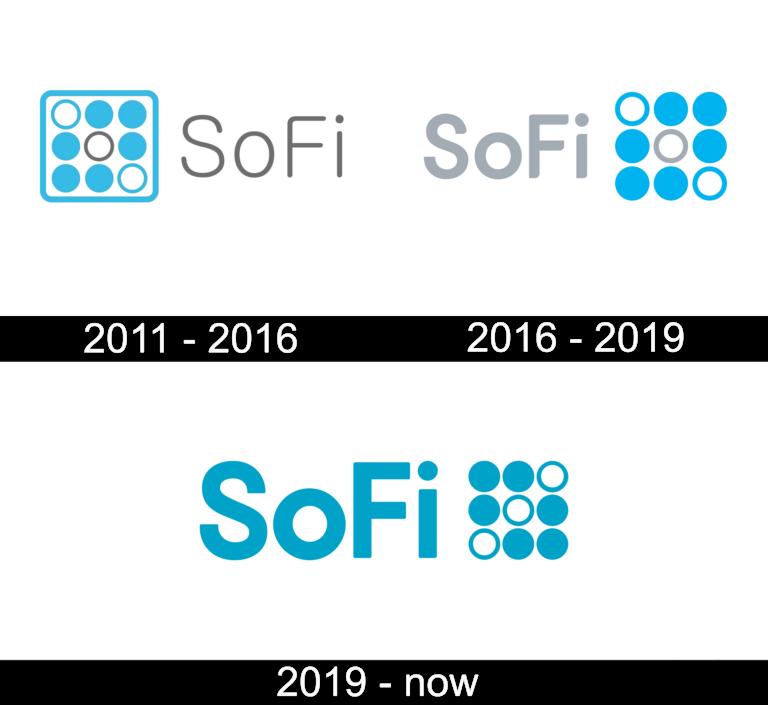 The SoFi logo has undergone major updates in 2011, 2016, and 2019.