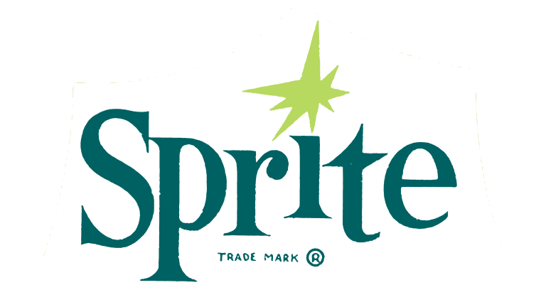 The first Sprite logo set the tone for decades of visual storytelling. The wordmark featured dark-green letters with sharp, extended serifs that looked as crisp as the drink itself. Instead of a simple dot, the lowercase “i” carried a lime-green eight-pointed star—a symbolic burst of citrus. This early emblem established Sprite’s enduring association with spark, flavor, and freshness.