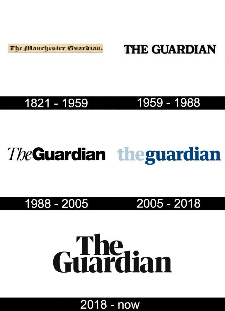 The current logo uses a custom serif typeface developed specifically for The Guardian, designed for both print and digital clarity.