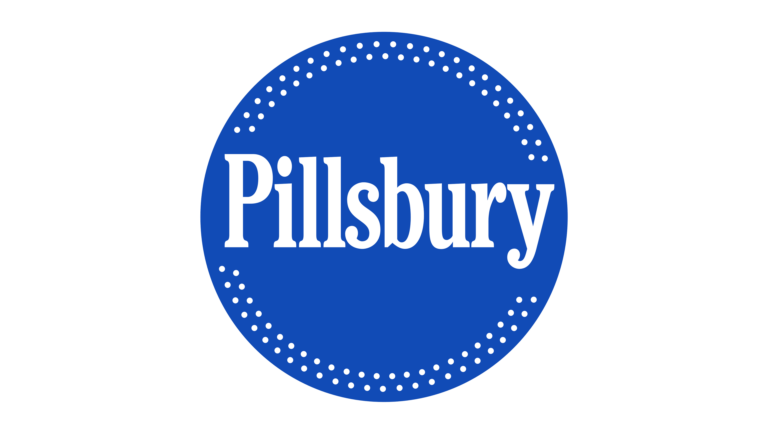 Pillsbury’s logo leans heavily on tradition. The serif typography, circular badge, and deep blue color create a sense of reliability and authority.