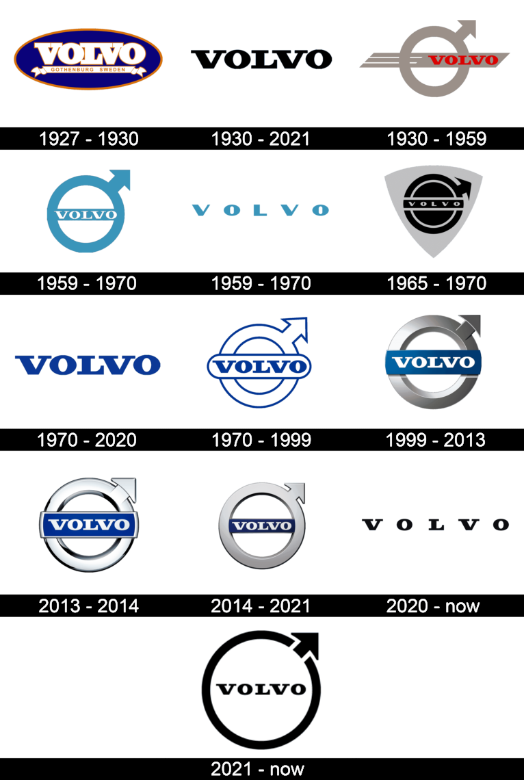 Across nearly a century, Volvo’s logo has evolved with changing eras of design, but the essence has remained untouched: a perfect circle, a rising diagonal arrow, and a wordmark defined by Nordic precision.